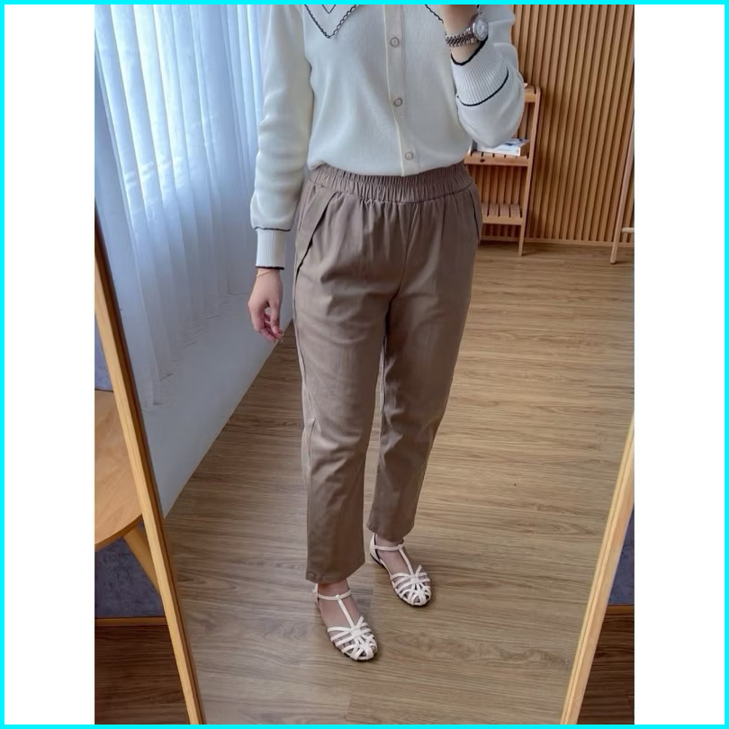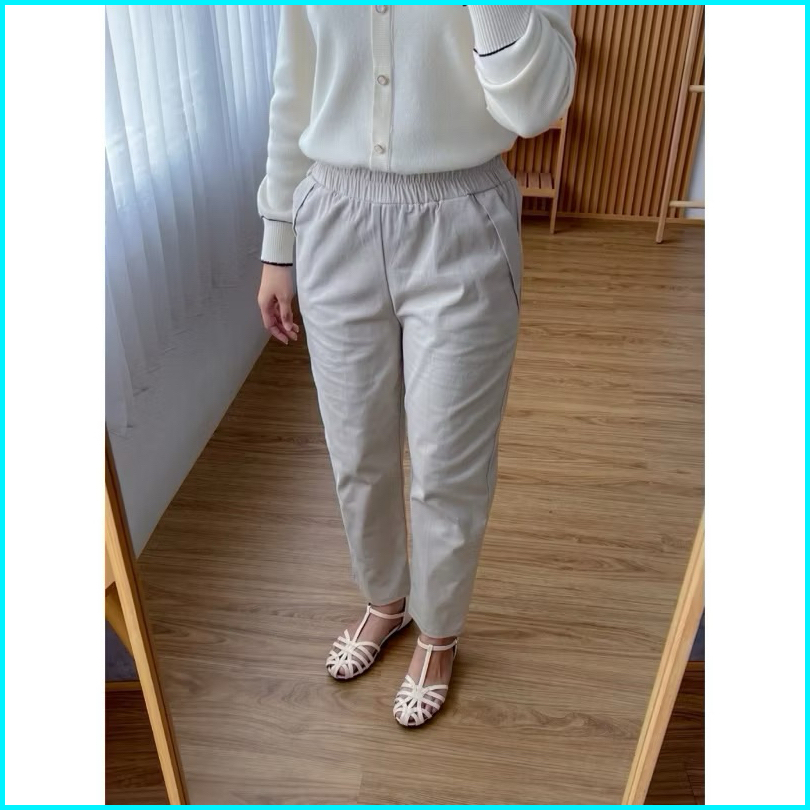 Kino Basic Pants Celana Baggy Pants Wanita Full Karet Celana Katun Celana Chino Stretch