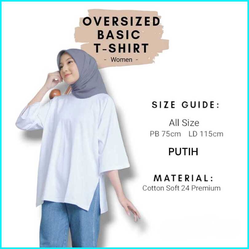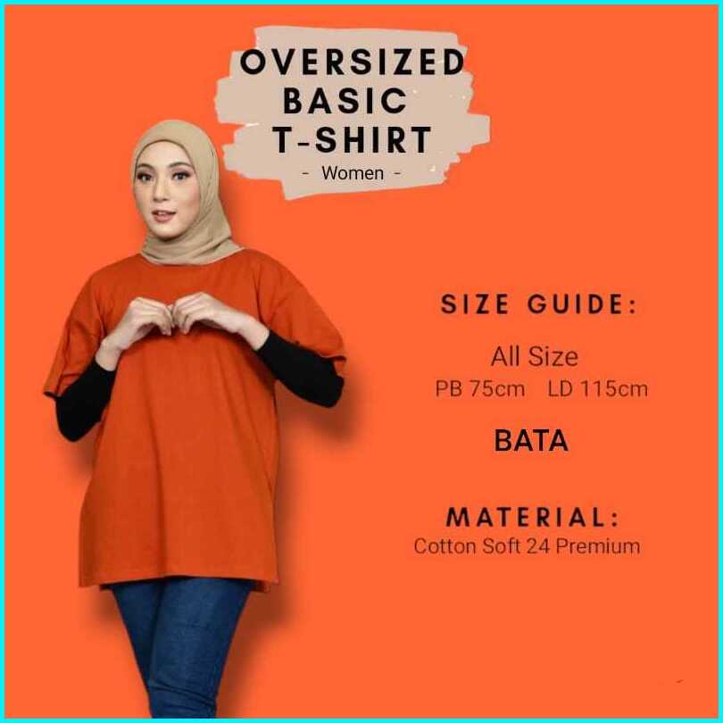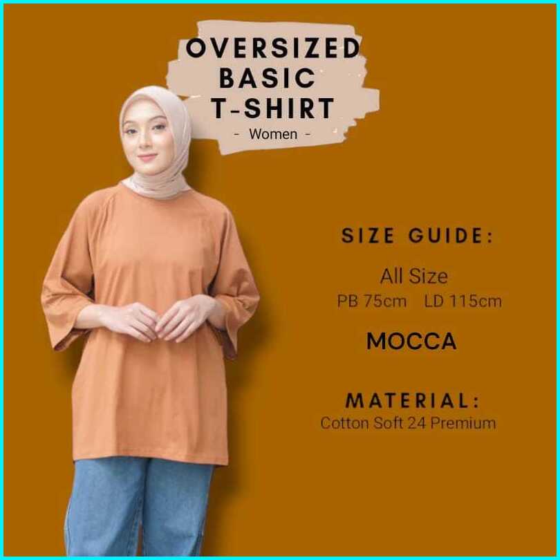 Basic Oversized Top Polos Wanita Jumbo Lengan 7 8 Atasan Casual Kaos Oversize Wanita