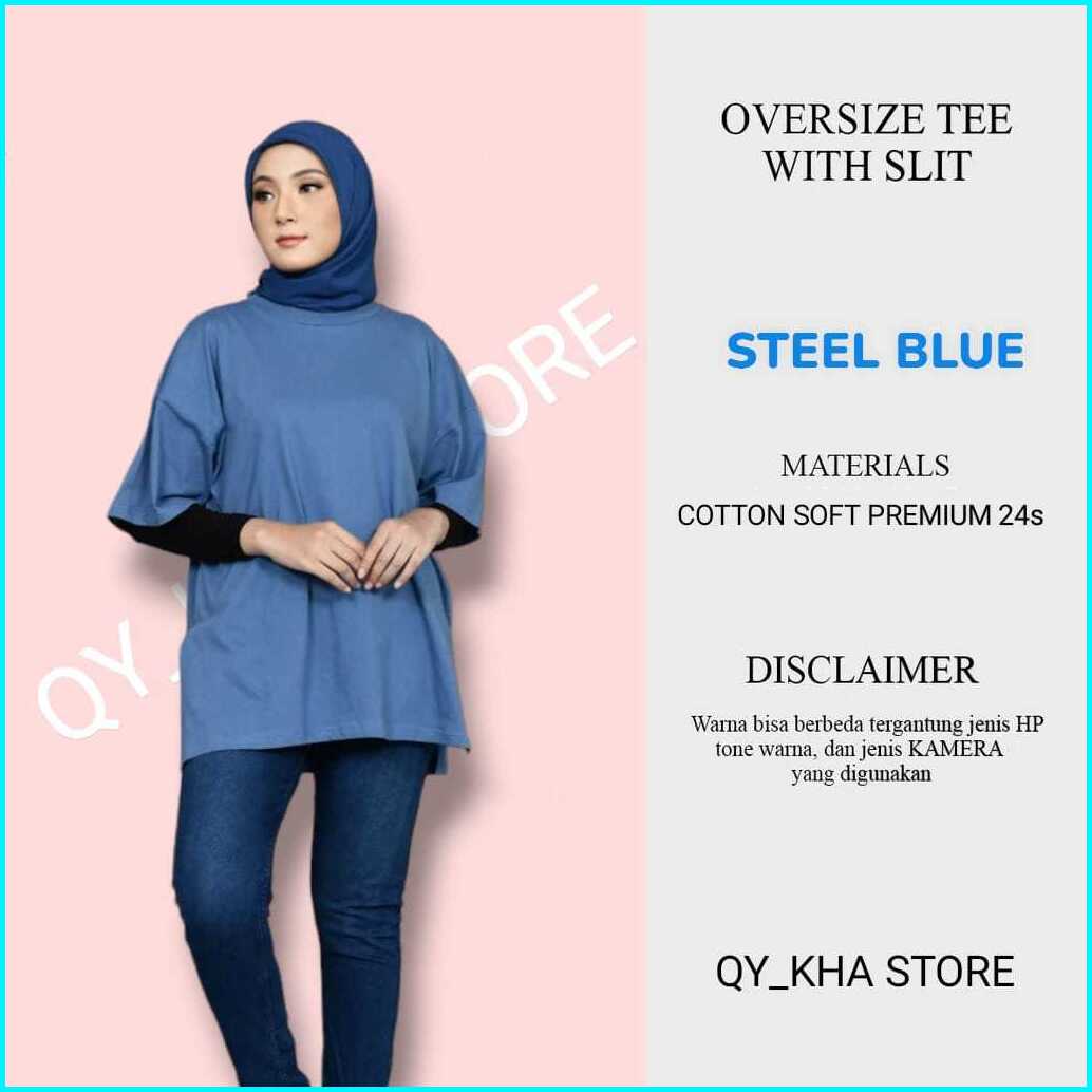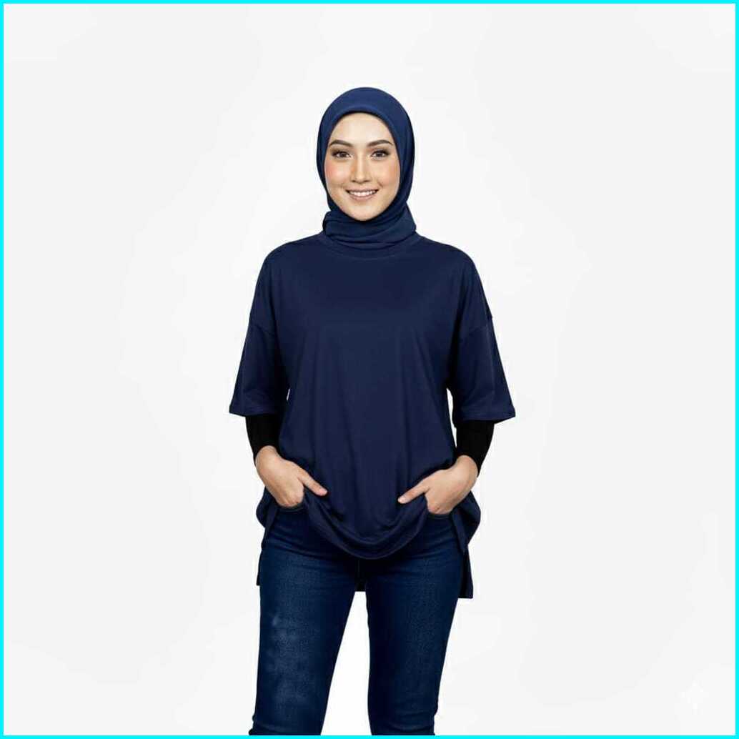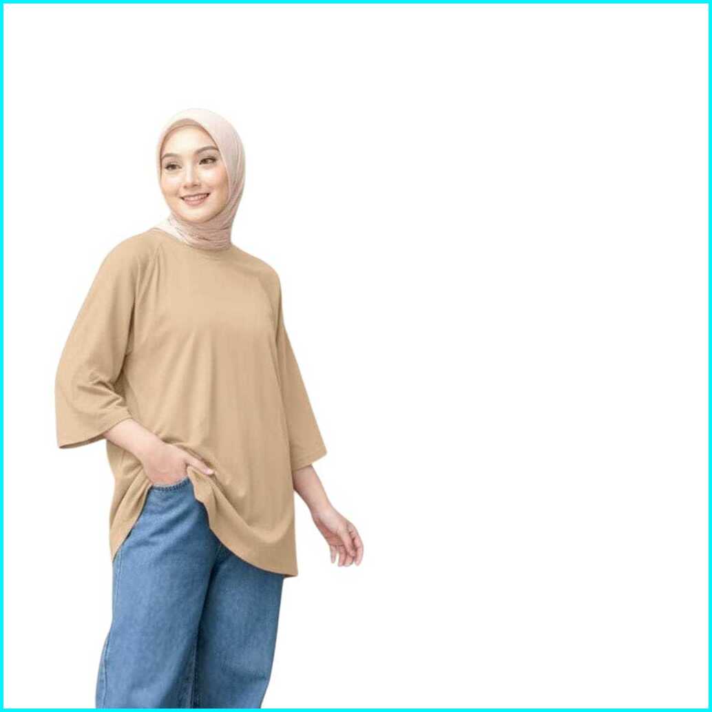 Basic Oversized Top Polos Wanita Jumbo Lengan 7 8 Atasan Casual