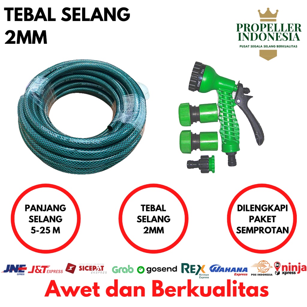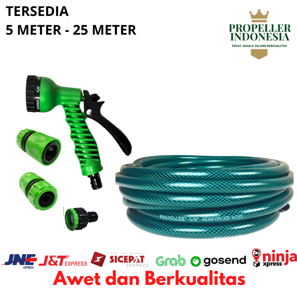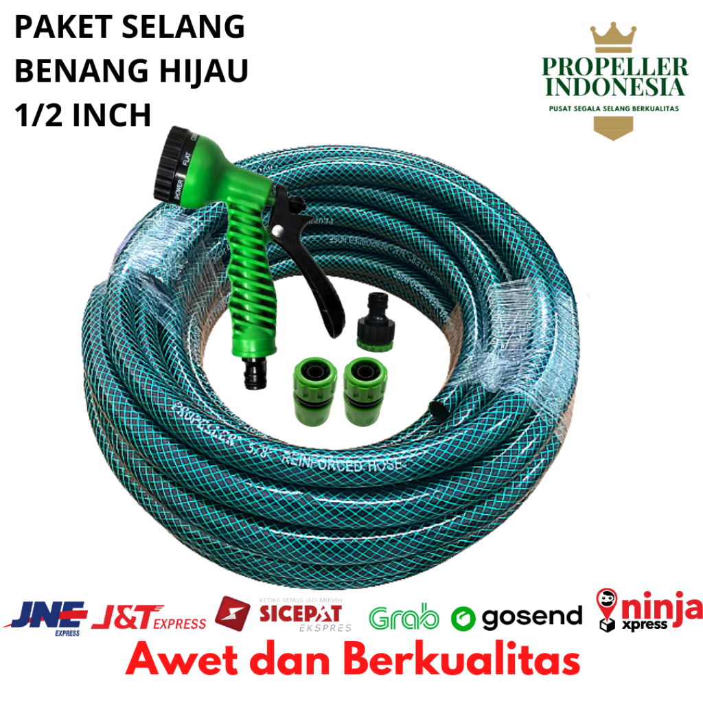 Selang Air 1/2 Paket Hijau Variasi Bengkok 15 Meter Untuk Taman Dan Siram Tanaman