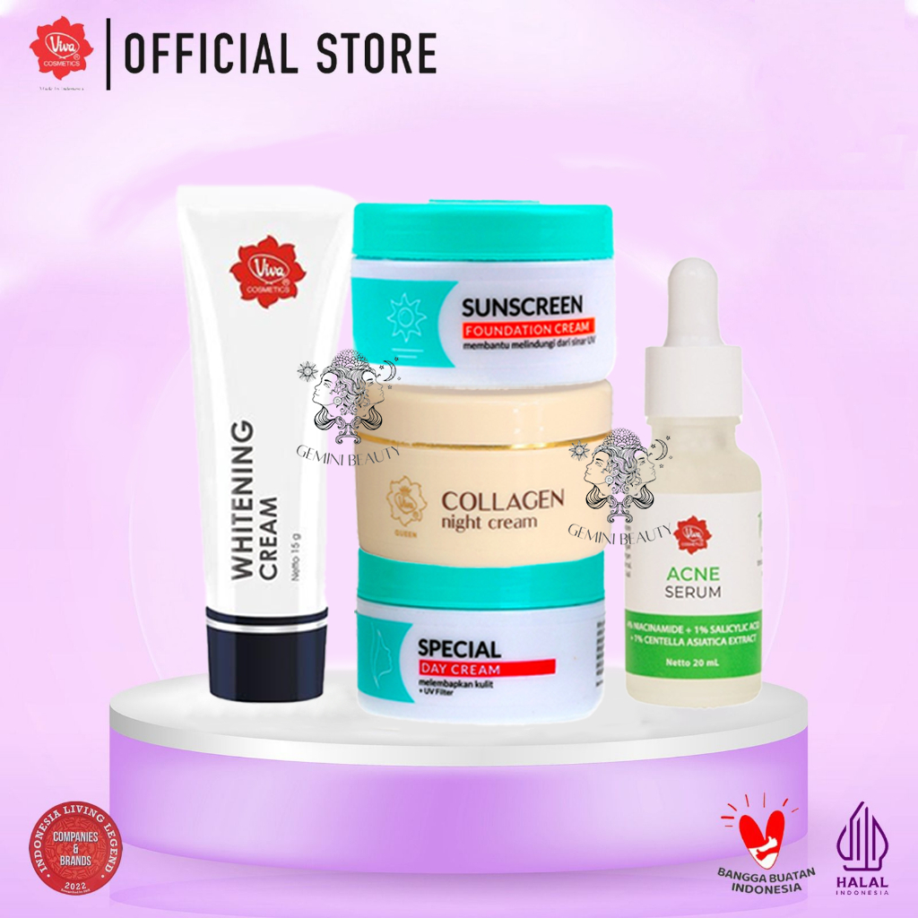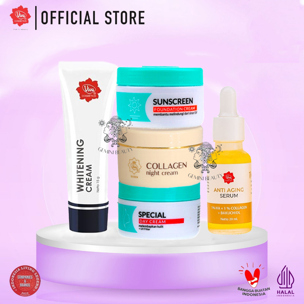 Viva Paket Anti Flek Hitam Paket Viva Day Cream Sunscreen Whitening Collagen Night Serum