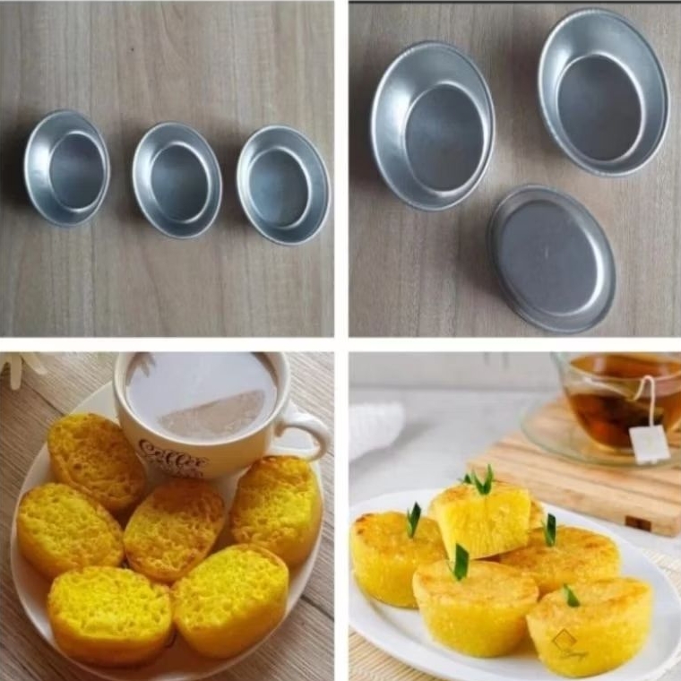 Cetakan kue bika ambon isi 12 pcs Loyang oval mini bahan aluminium tebal tanpa sammbungan