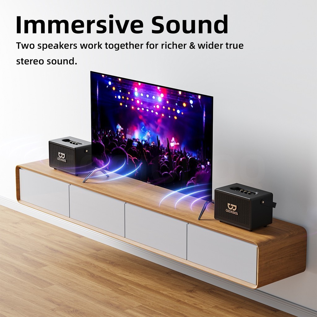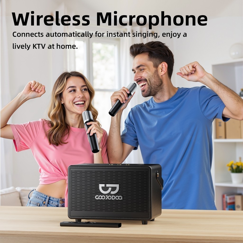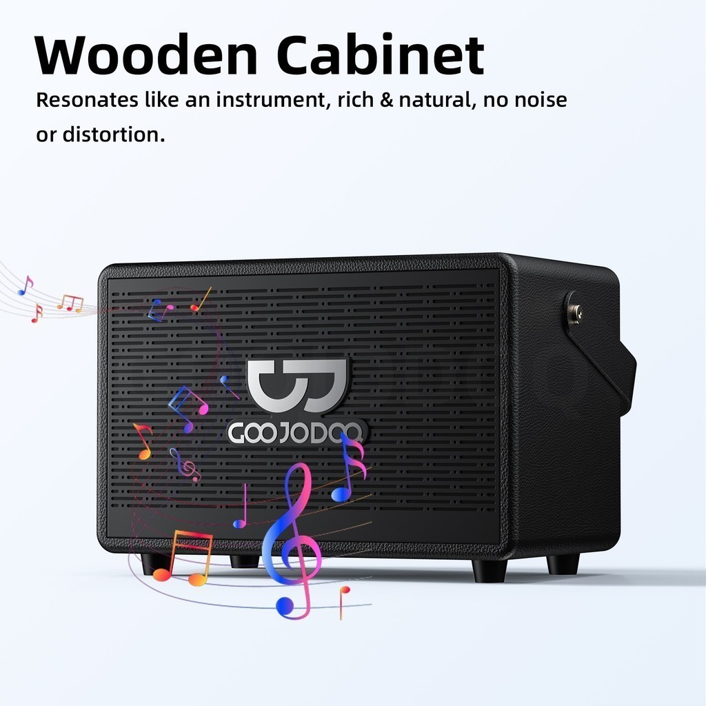 GOOJODOQ Retro Bluetooth Speaker 3 Playback Modes Intelligent Bass and Treble Adjustment Two Wireless Microphones