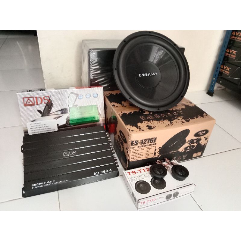 PAKET AUDIO MOBIL DENGAN SUBWOOFER 12 INCH