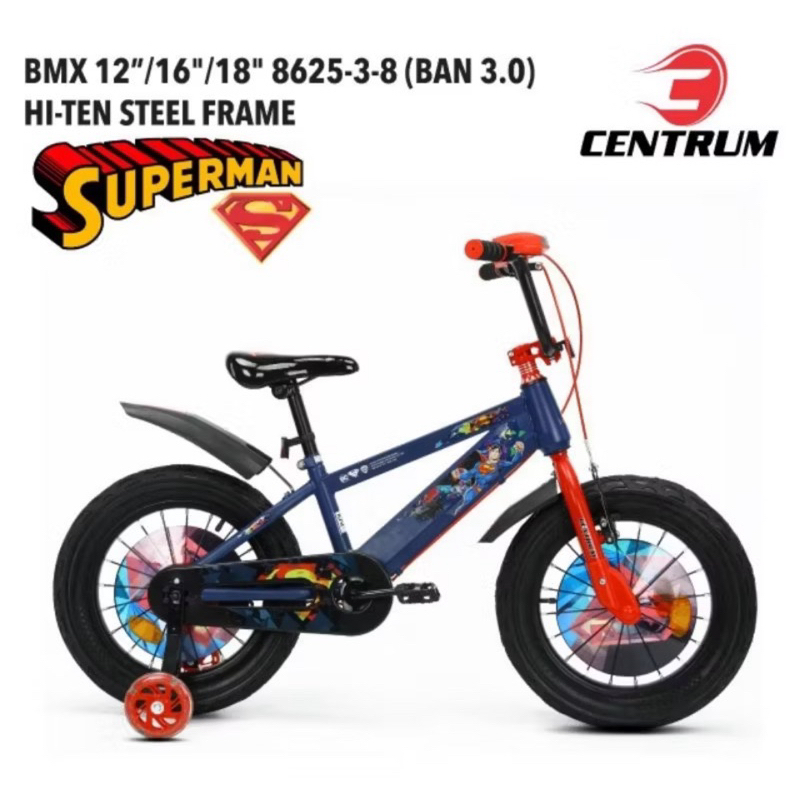 SEPEDA ANAK LAKI LAKI TERMURAH SEPEDA ANAK BMX 18 INCH CENTRUM SUPERMAN (MUSIK+LAMPU) BAN 3.0 POMPA SIAP KIRIM HARI INI