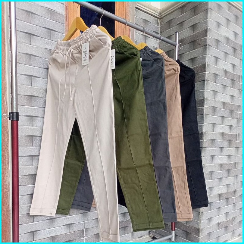 Zilka - Baggy Pants Twill Combed Premium Celana Basic Wanita Standar Jumbo