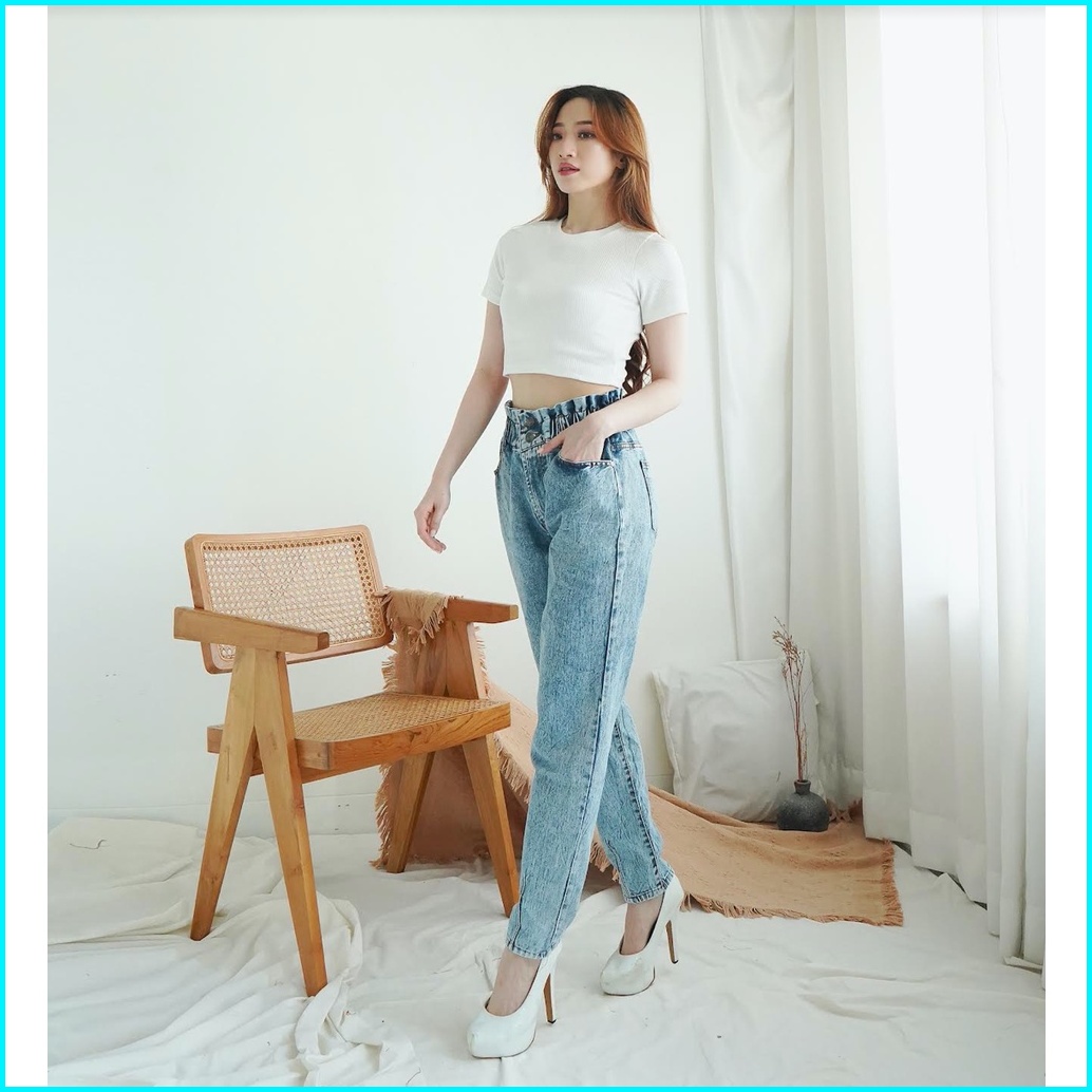 Kaos Knit Crop Top Kaos Pendek Wanita Crop Tee Tshirt Polos 123
