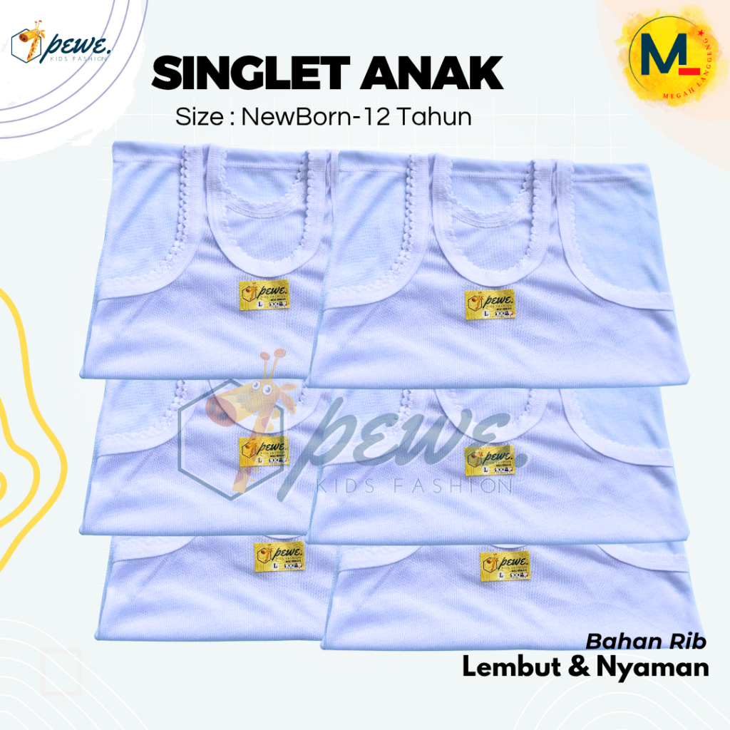 12 Pcs Kaos Dalam Anak warna putih Laki Laki dan Perempuan 7-8 tahun - Daleman Anak Laki Laki/ Perempuan Umur 1-12 Tahun tanpa bolong bolong