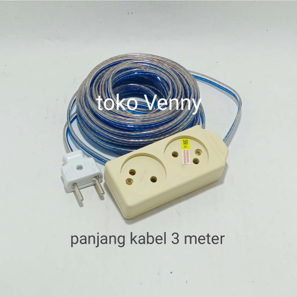 Stop Kontak 2 Lubang/3 Lubang +Kabel 3 Meter 5 Meter 10 Meter 15 Meter Siap Pakai