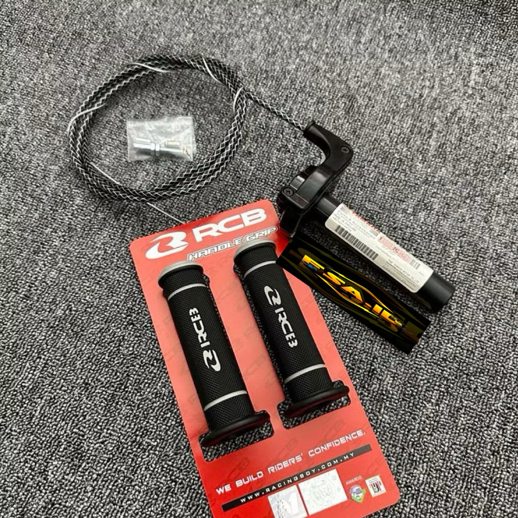 Paketan Gas Spontan YZ Plus Handgrip RCB HG55 +1Kabel Gas Serat Carbon Universal Semua Motor Bisa BSM