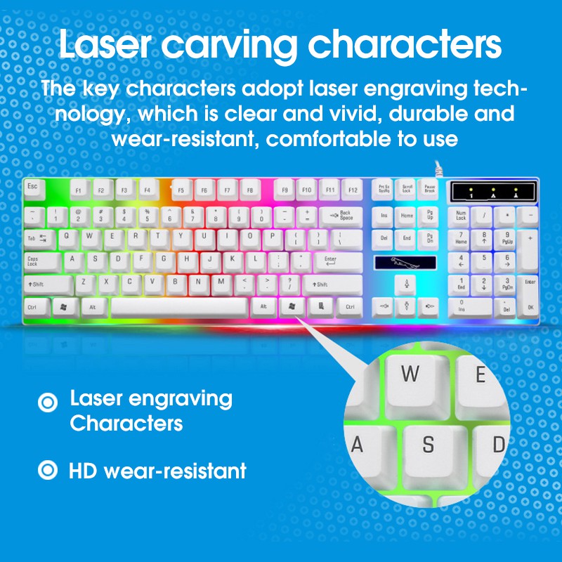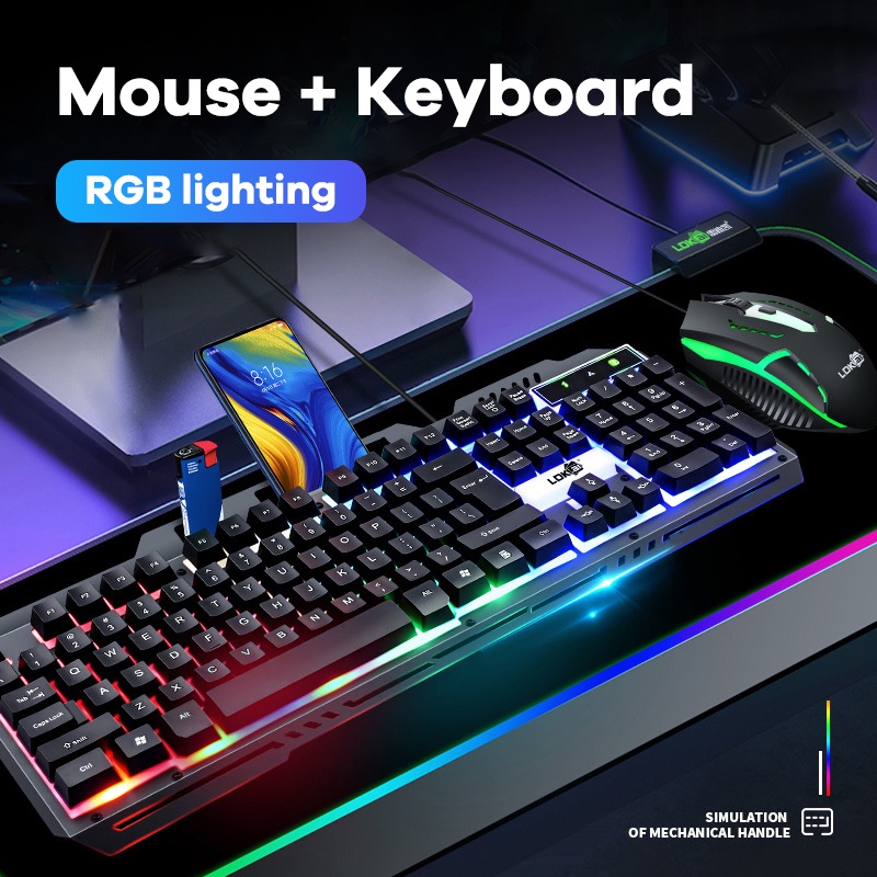 Paket Keyboard Gaming Dan Mouse Kabel Usb Portable Full Size Dengan Rgb Led Untuk Pc