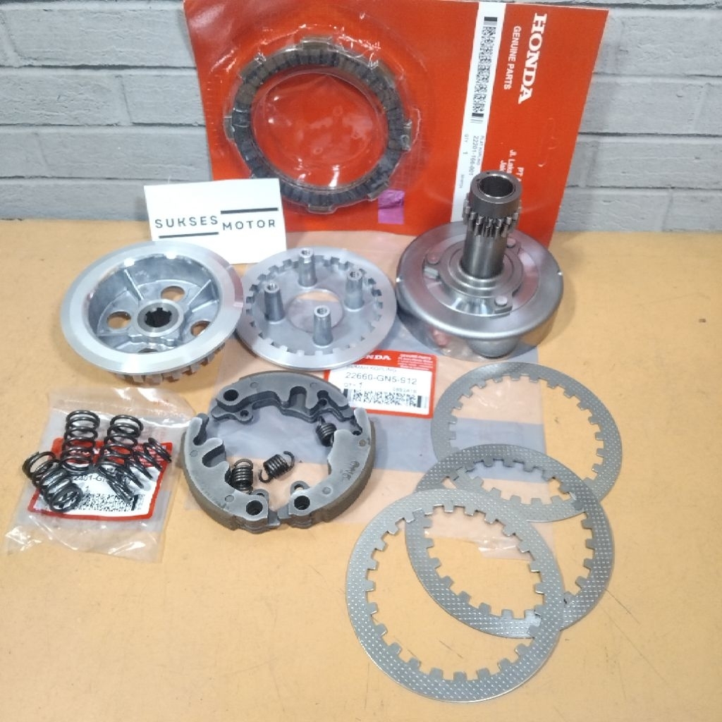 paket kopling komplit Grand ( Lonceng + kampas kopling + kampas ganda + kaki 4 + lawan + plat gesek dan per kopling ) mo