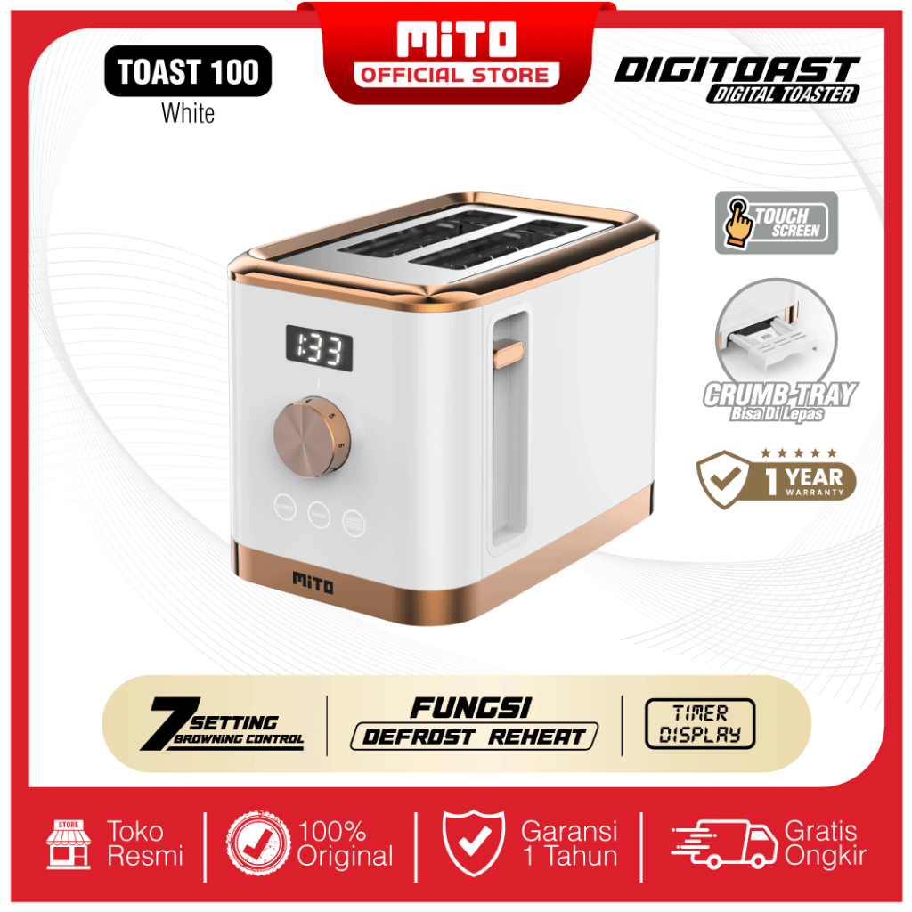 MITO Toast100 - Digital Toaster (DIGITOAST)-Touchscreen-Timer Display-7 Setting Browning Control-Reheat & Defrost-Extra Wide Slot