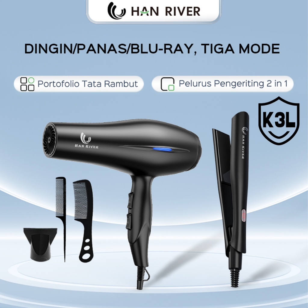 Paket Hair Dryer Dan Catokan Han River Hrhd01Bk & Hrjfb03Bk Untuk Perawatan Rambut