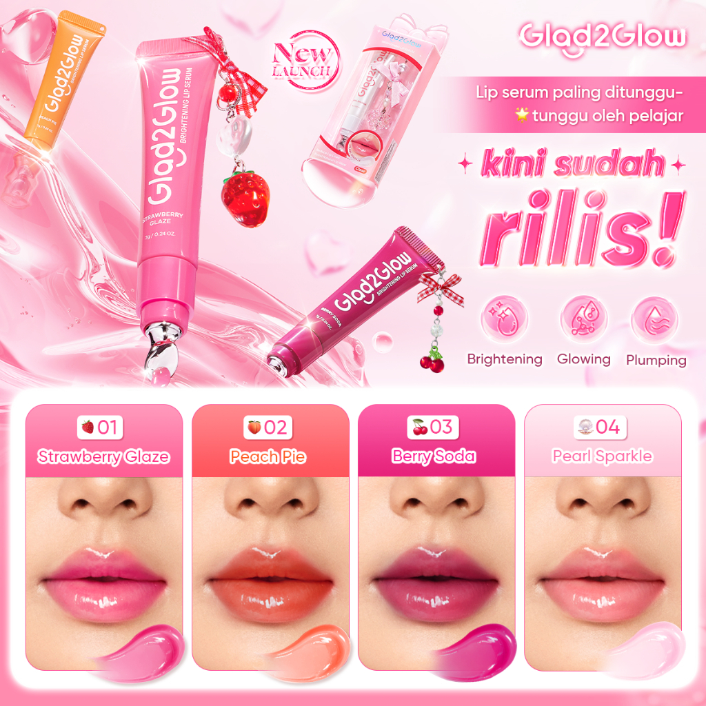 Glad2Glow BRIGHTENING LIP SERUM 7g Mencerahkan Melembabkan & menambahkan warna 3in1 liptint lipstick
