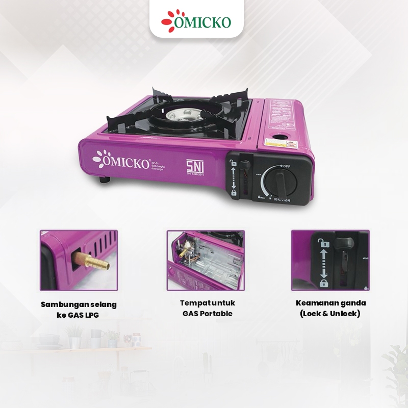 Paket Kompor Portable + Grill Pan Anti Lengket Omicko Alat Masak Grill Pan Anti Lengket Paket BBQ Paket Grill Panggangan