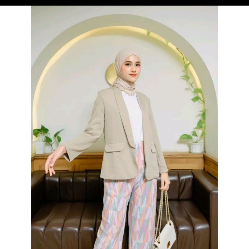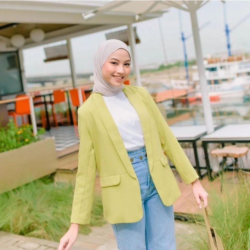 Blazer Premium Bladies Kerah Lurus Lengan Panjang Wanita Fabric