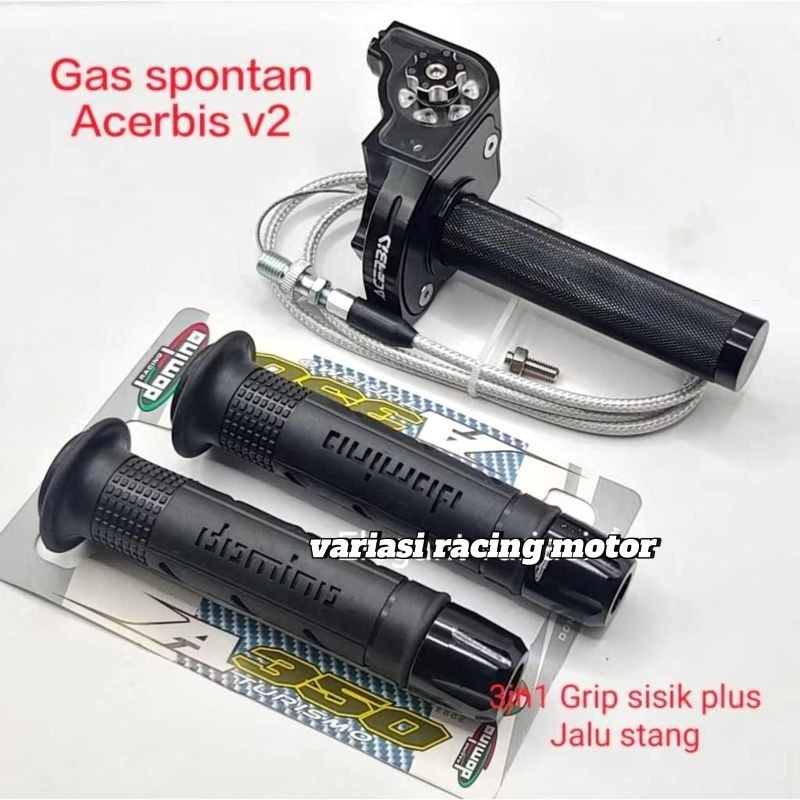 3in1 Gas Spontan Acerbis + Handgrip Sisik + Jalu Stang Gas Spontan Kontan Acerbis Full Cnc Plus 1 Kabel Universal AJV