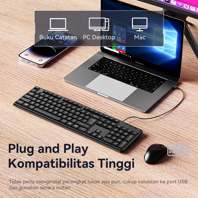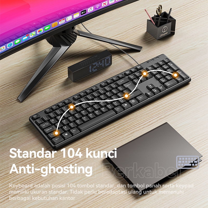 Keyboard Kabel Usb Basike 104 Key Full Size Office Mouse Wired Bass Untuk Pc Laptop