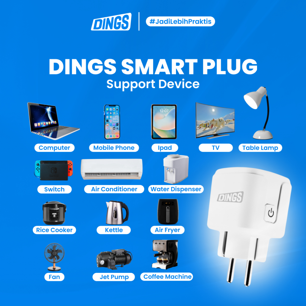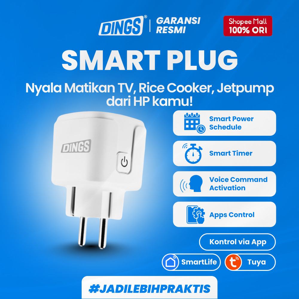 Smart Plug Wifi Dings Hemat Energi Dengan Timer Otomatis Dan Kontrol Jarak Jauh Via Hp
