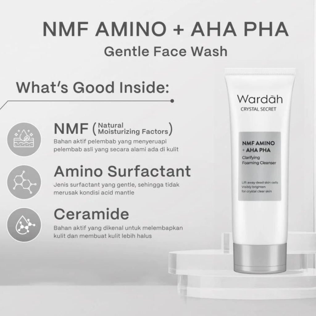 Wardah Crystal Secret NMF Amino + AHA PHA Clarifying Foaming Cleanser 100 mL