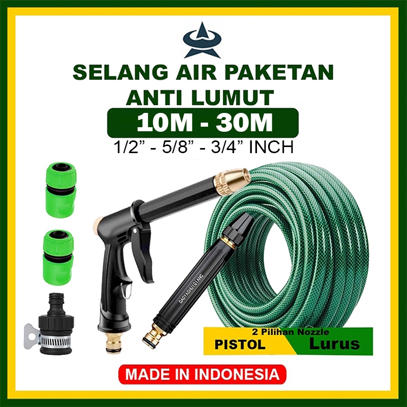 Selang Air Paketan Cuci Motor 30 Meter Semprotan Air Mobil Dan Taman Benang Hijau Komplit Tinggal Colok Pasang Kran