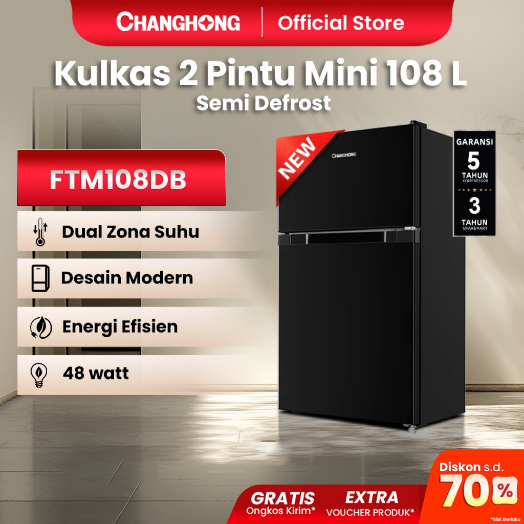Kulkas Changhong Dua Pintu Mini Kapasitas 108 Liter Lemari Es Semi Defrost Black