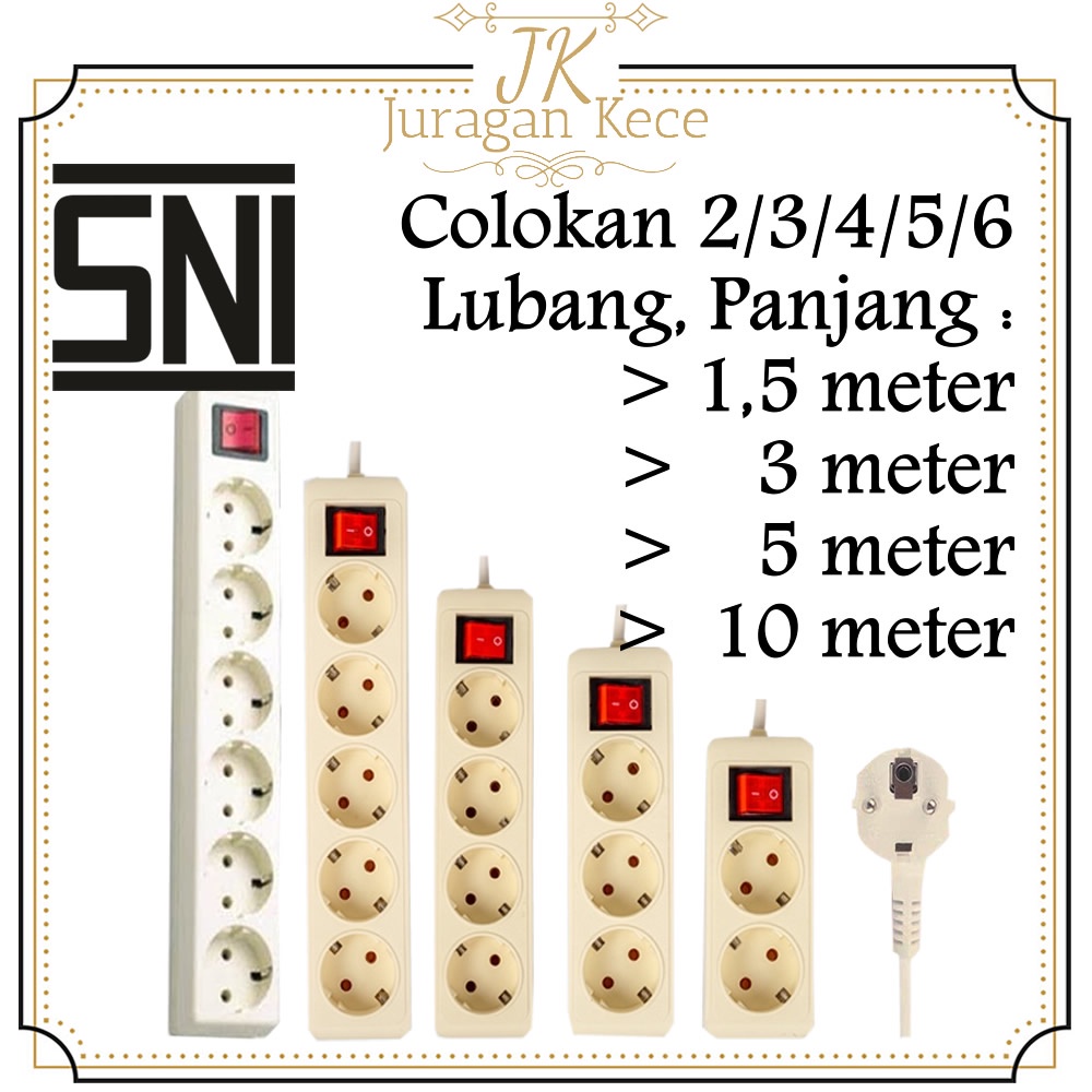Stop Kontak 2 / 3 / 4 / 5 / 6 Lubang Colokan Cok Listrik Original SNI Panjang Kabel 1,5 Meter / 3 Meter / 5 Meter / 10 Meter