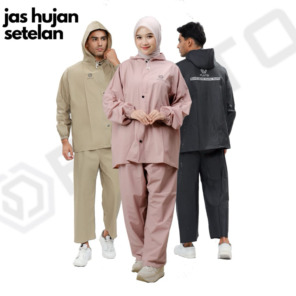 Jas Hujan Raincoat Anti Rembes Pria Wanita Setelan Celana Pvc Tebal Pluto