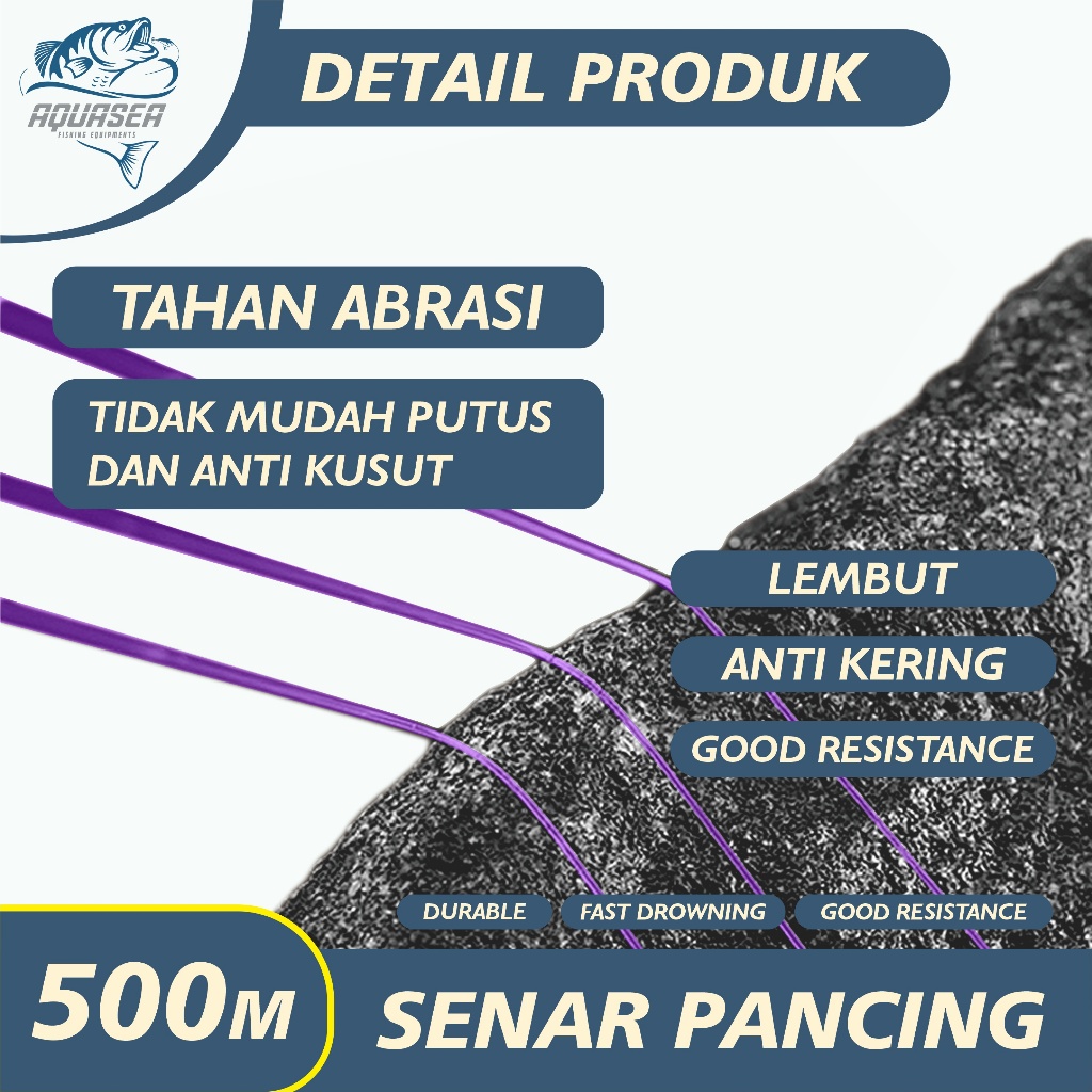 AQUASEA TALI PANCING 500M SENAR PANCING TARANTULA UNGU SENAR PANCING ANTI KERITING SENAR PANCING WATERLINE