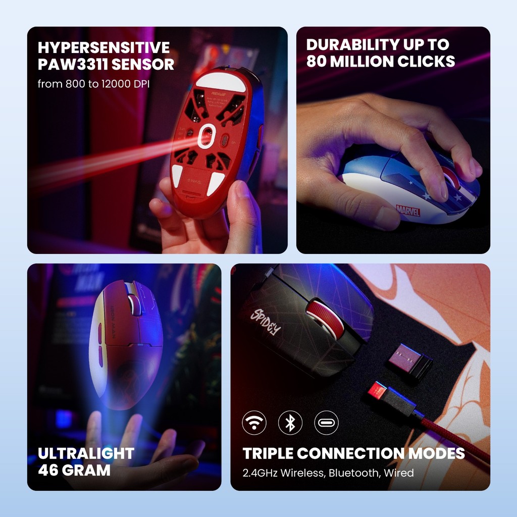 Rexus RIVA RX120 RX 120 RX-120 Marvel Edition Mouse Gaming Wireless Bluetooth Ringan Light Weight