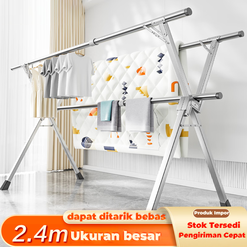 Jemuran Baju Sus304 Stainless Steel Lipat 24M Portable Tahan Karat Untuk Dalam Dan Luar Ruangan