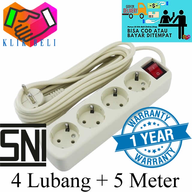 Stop Kontak 4 Lubang SNI Original Colokan Cok Listrik Panjang Kabel 1,5 Meter / 3 Meter / 5 Meter / 10 Meter
