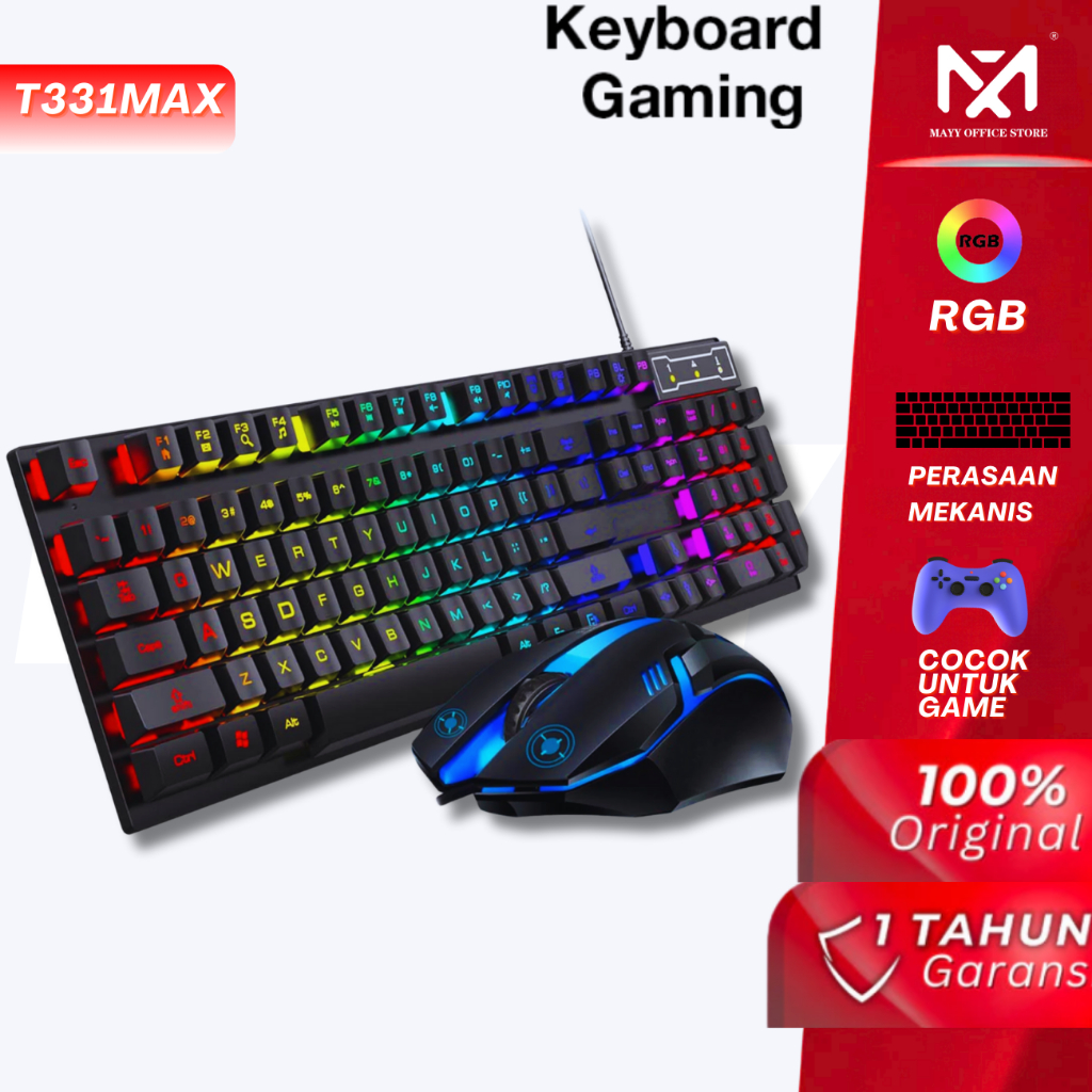 Keyboard Mouse Gaming Mayy Official Id 1 Set Mechanical Rgb Led Kabel Usb Bt300