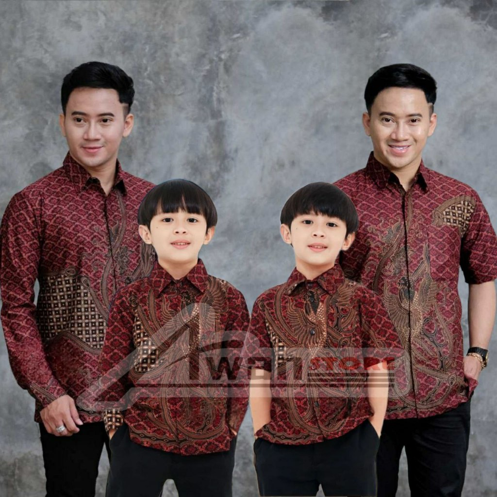 TERBARU Batik Burgundy Motif Phoenix Kemeja batik ayah dan Kemeja Batik anak cowok BATIK Warna Maron