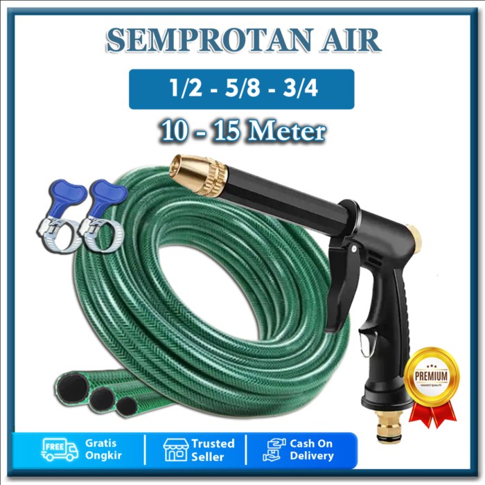 Selang Air Paket Kepala Jet Spray Semprotan Hijau Anti Lumut 5-15 Meter Untuk Cuci Motor Dan Mobil
