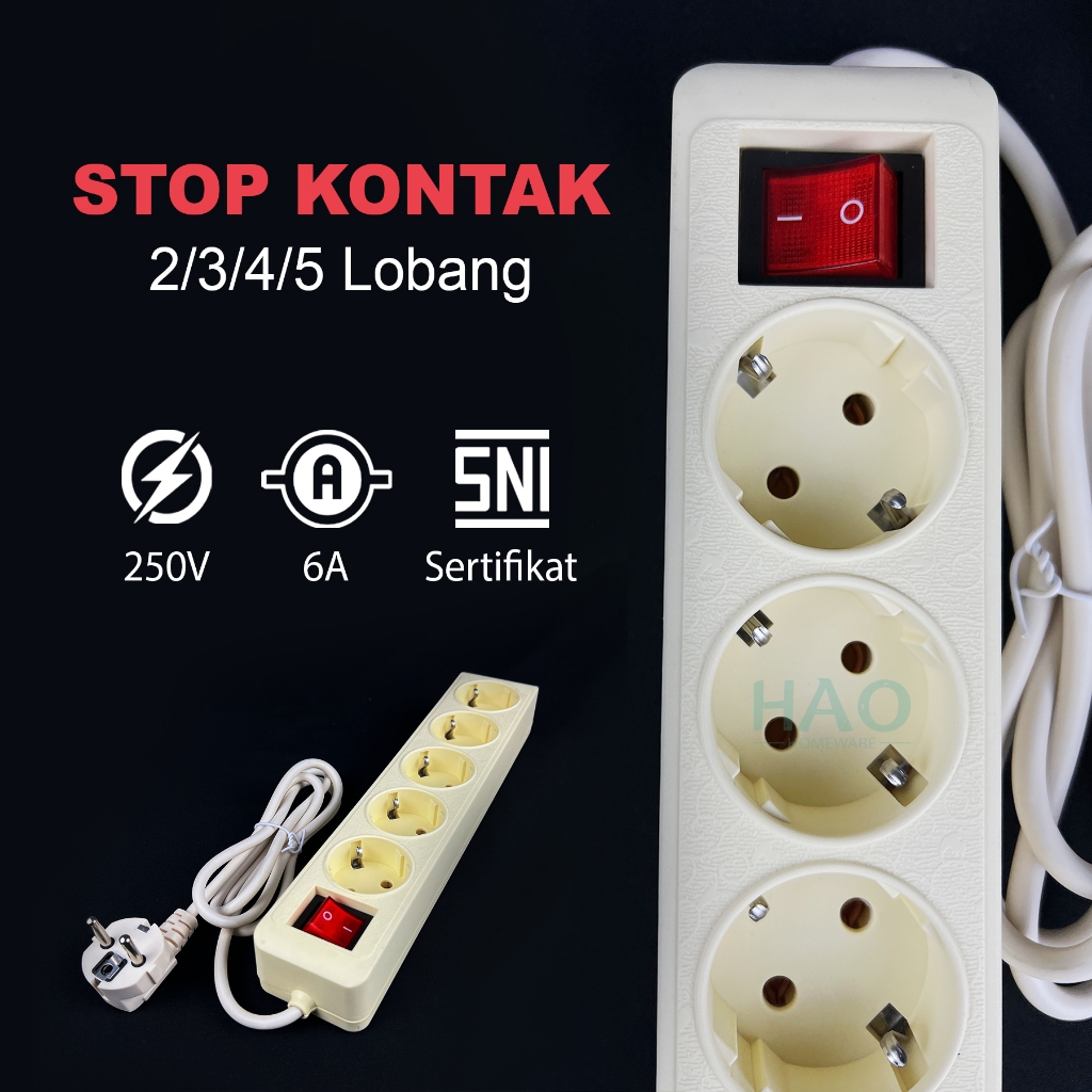 STOP KONTAK + KABEL 2/3/4/5 LUBANG 1.5/3/5/10 M SNI Barang Lokal