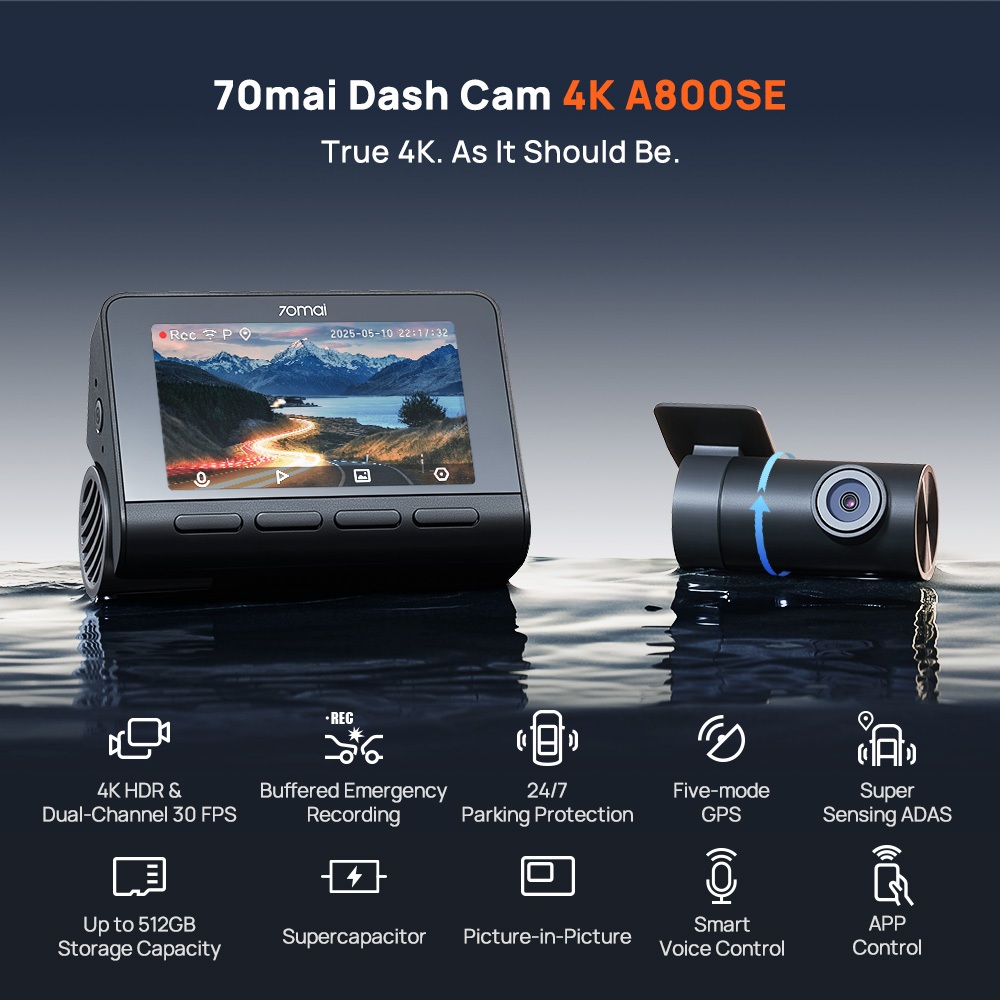 70mai Dash Cam A800SE Set 4K WI-FI 6 Super Capacitor Battery Voice Control 70mai Dashcam Mobil