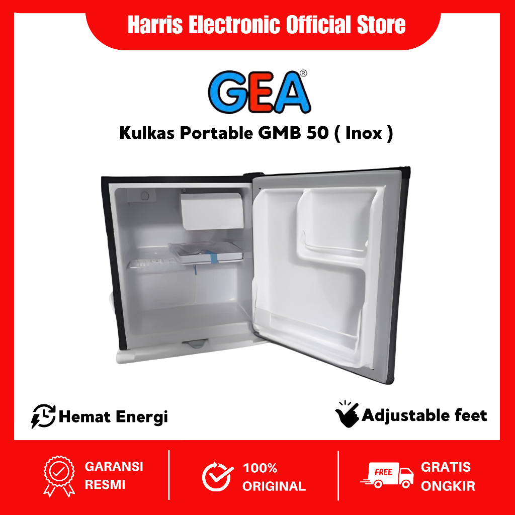 Kulkas Mini Bar Gea Gmb-50 Black Matt Grey Portable Rak Besi
