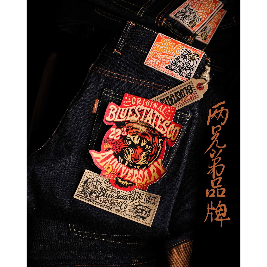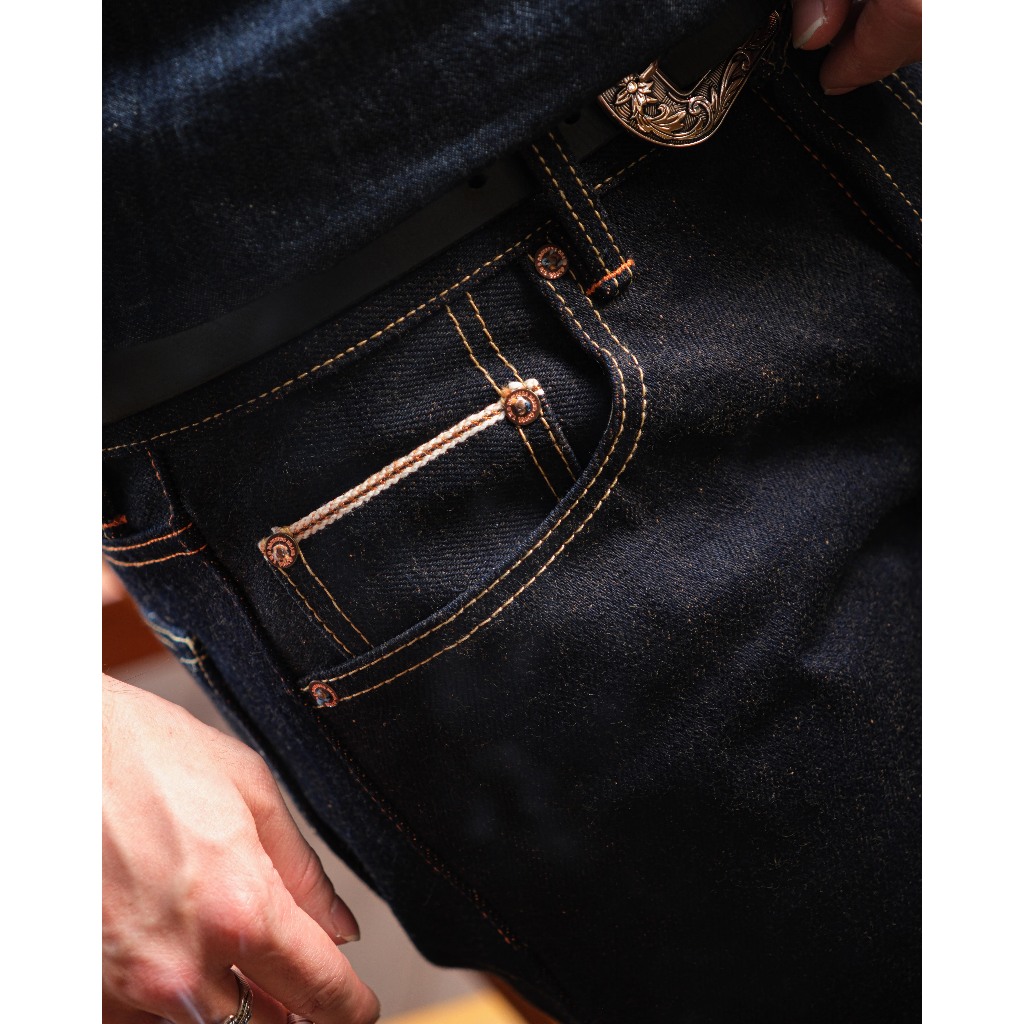 Heavyweight Raw Selvedge Bluestates Denim Pants - 22.5 oz Anniversary Orange Gold Weft unsanforized Slim Straight jeans