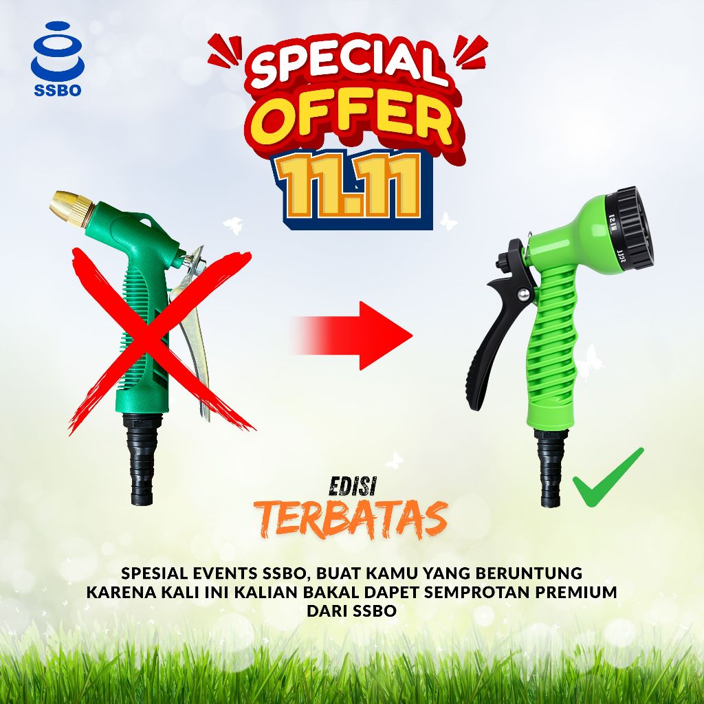 Selang Air Ssbo Semprotan 10-30 Meter Hijau Anti Lumut Jet Spray Untuk Taman Cuci Motor Dan Mobil