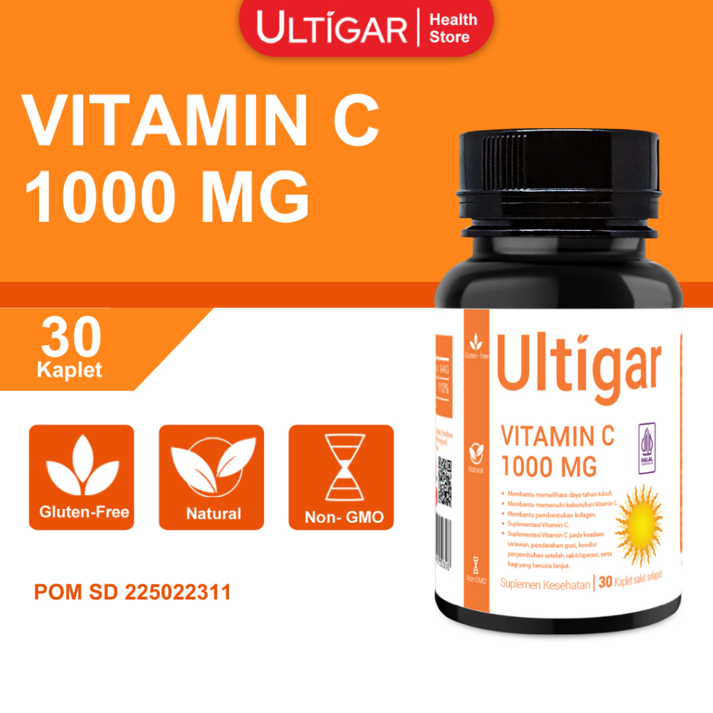 Vitamin C Ultigar 1000mg Botol isi 30 Kaplet Salut Selaput Suplemen Kesehatan
