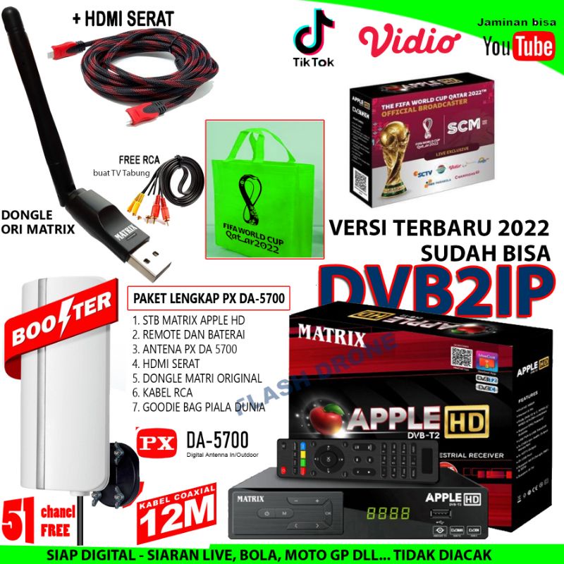 Set Top Box Tv Digital Dvbt2 Matrix Apple Hd Siap Digital