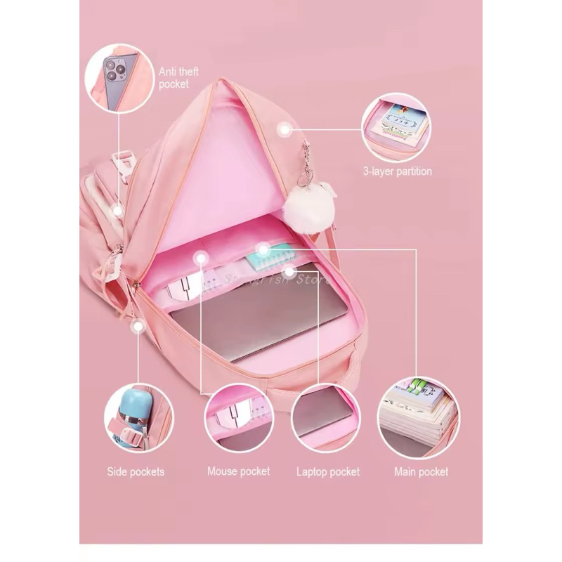 Tas Punggung Anak Sekolah Karisa polos Backpack multifungsi kedap air Fashion anak sd smp sma 2025