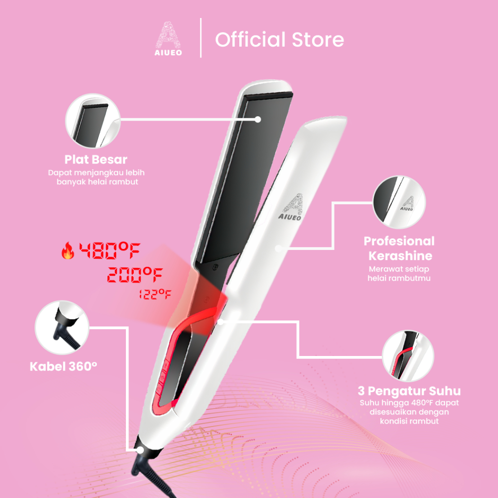 catokan rambut AIUEO 957 Celeb 3in1 plat besar rambut ikal straightener curly blow