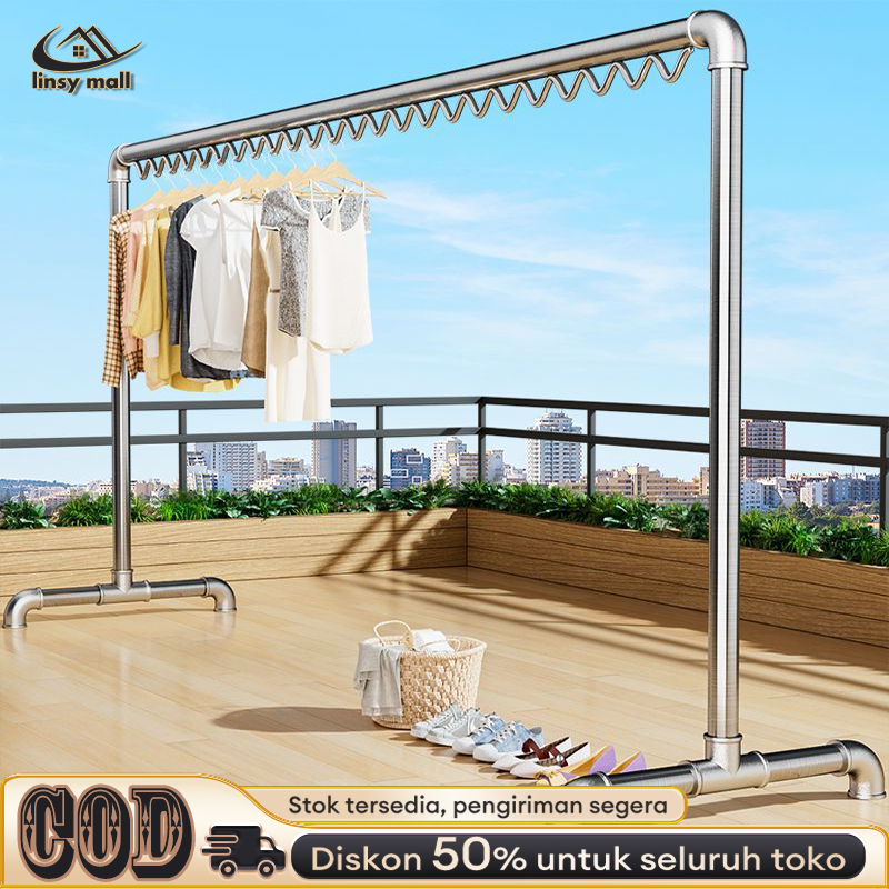 Jemuran Baju Tabung Baja Jemuran Baju Stainless Steel Stand Hanger Heavy Duty
