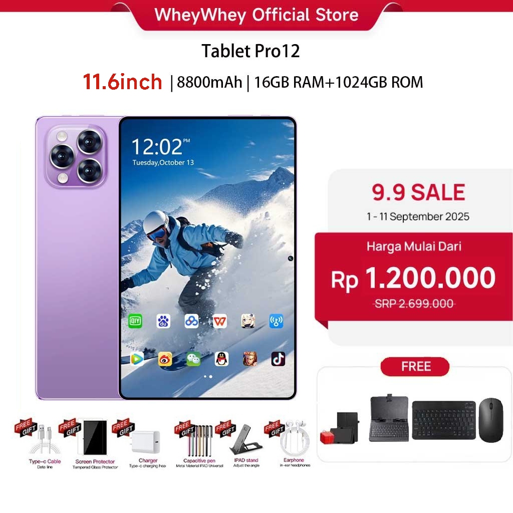 Wheywhey Tablet Pro12 11.6" 16GB+1024GB 8800mAh Kamera 48MP 5G+WiFi+Dual SIM Untuk Gaming & Belajar IPS Full Screen Android 12 Garansi 1 Tahun