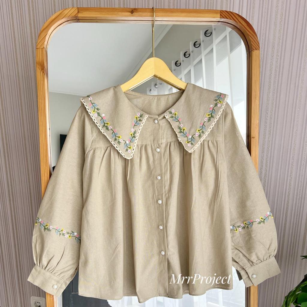 Atasan Bordir Wanita kemeja linen | Size XXL XL L M S | Atasan Wanita Best Seller LD 120 110 Dst | lumina shirt by mrr project