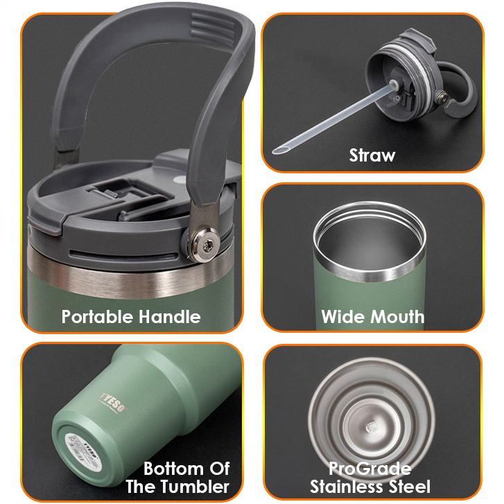 Tyeso Tumbler Handle 2in1 Stainless Steel Original Mug Coffee Vacuum Insulated Bottle Termos