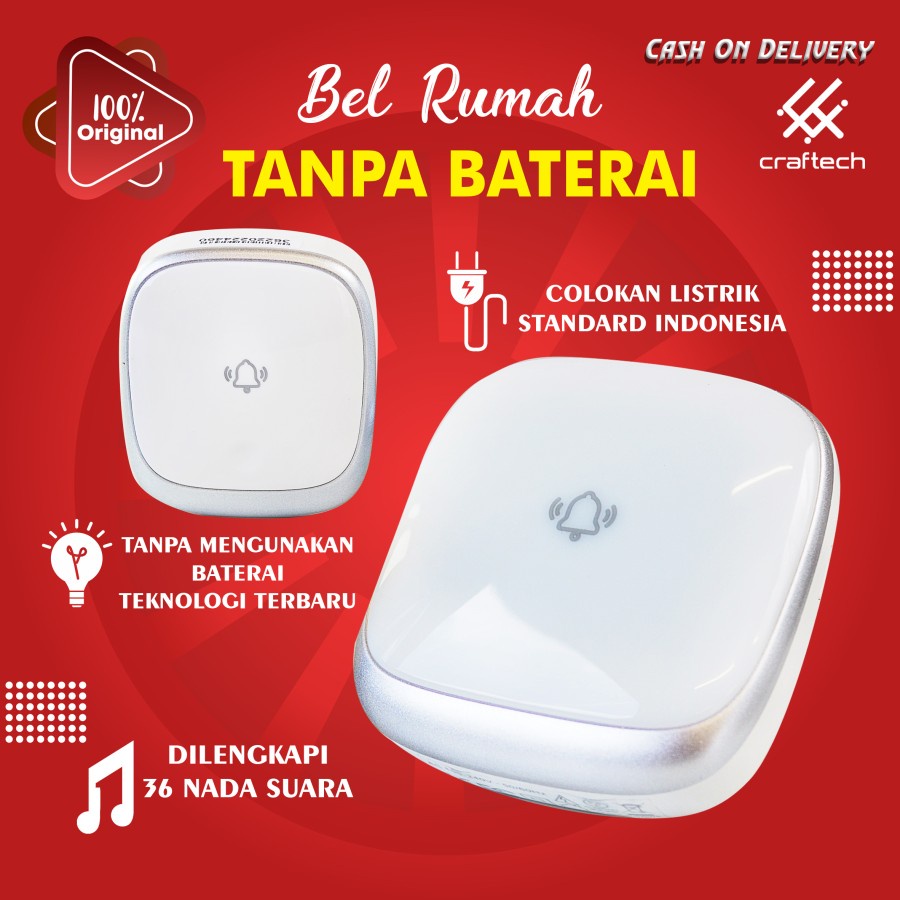 Bel Rumah Wireless 300M Ip44 Waterproof Dengan Pilihan Musik